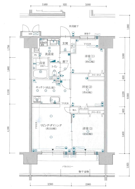 専有面積 壁芯 63.36㎡ 間取り(内訳) 3LDK